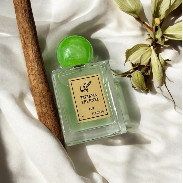 برند Tiziana Terenzi یکی از نیشبرندهای ایتالیایی عطرسازی است که به خاطر ترکیبهای خاص، پیچیده و اغلب قدرتمندش معروفههای بویی عطرهای این برند معمولاً لوکس، چندلایه و با ماندگاری و پخش بوی بالا هستن نتهای ابتدایی: هلو، گلابی، تمشک، توت سیاه، شنزر، برگ مو نت میانی: نتهای گلی نت پایه: مشک، چوب صندل، وانیل، چوبهای شیرین، نعناع هندی
